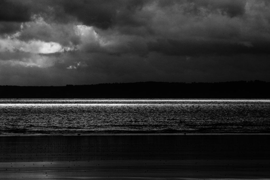 L’orage gronde, d’un coup, deux traits brillants sur l’océan.