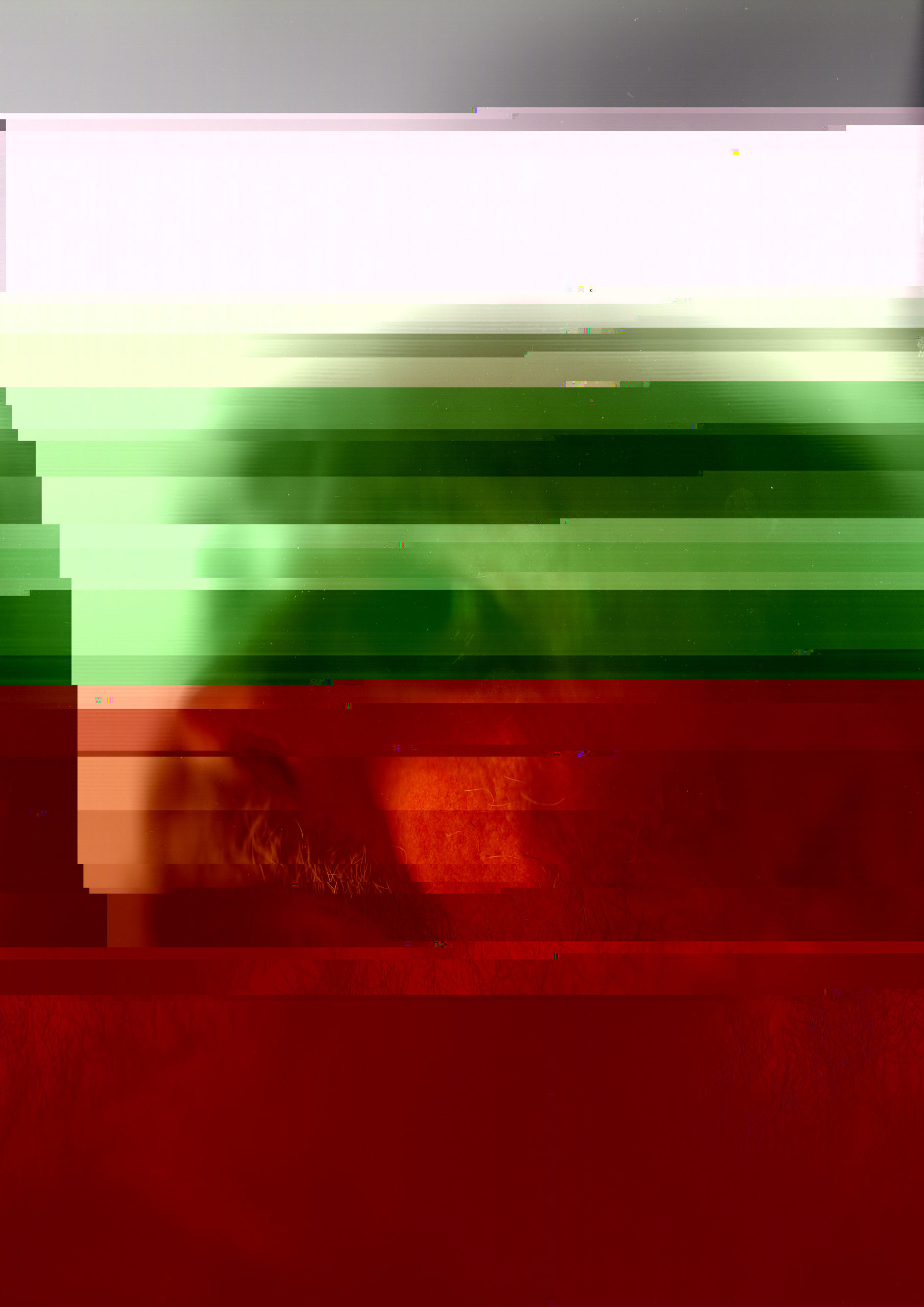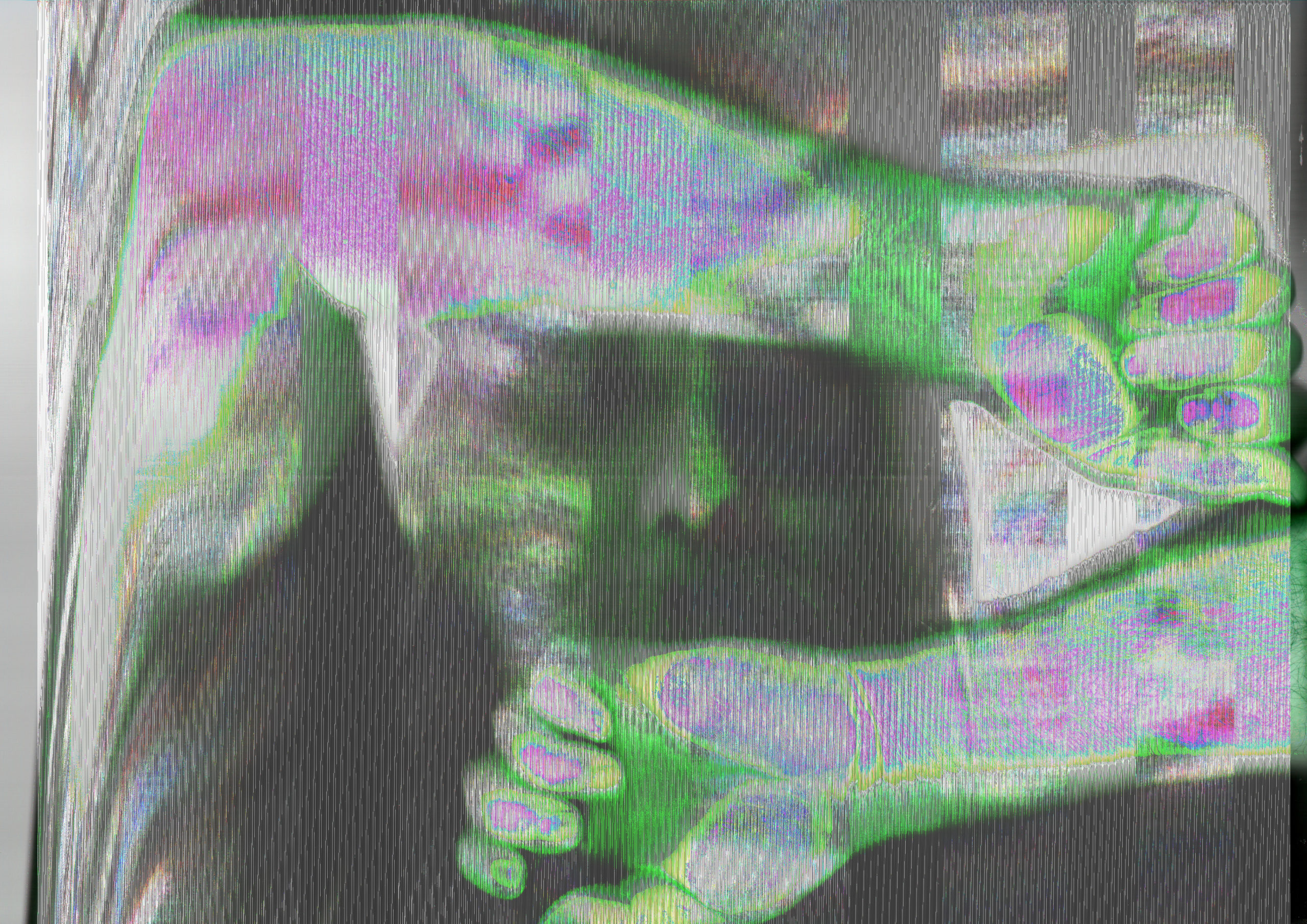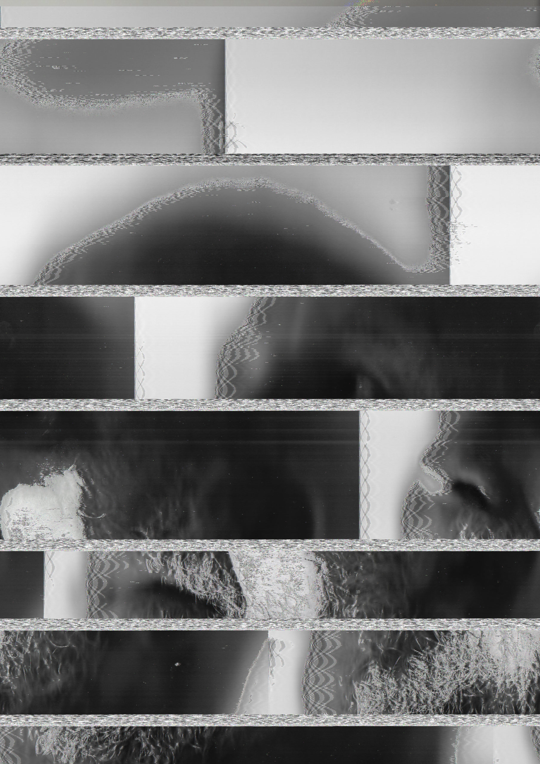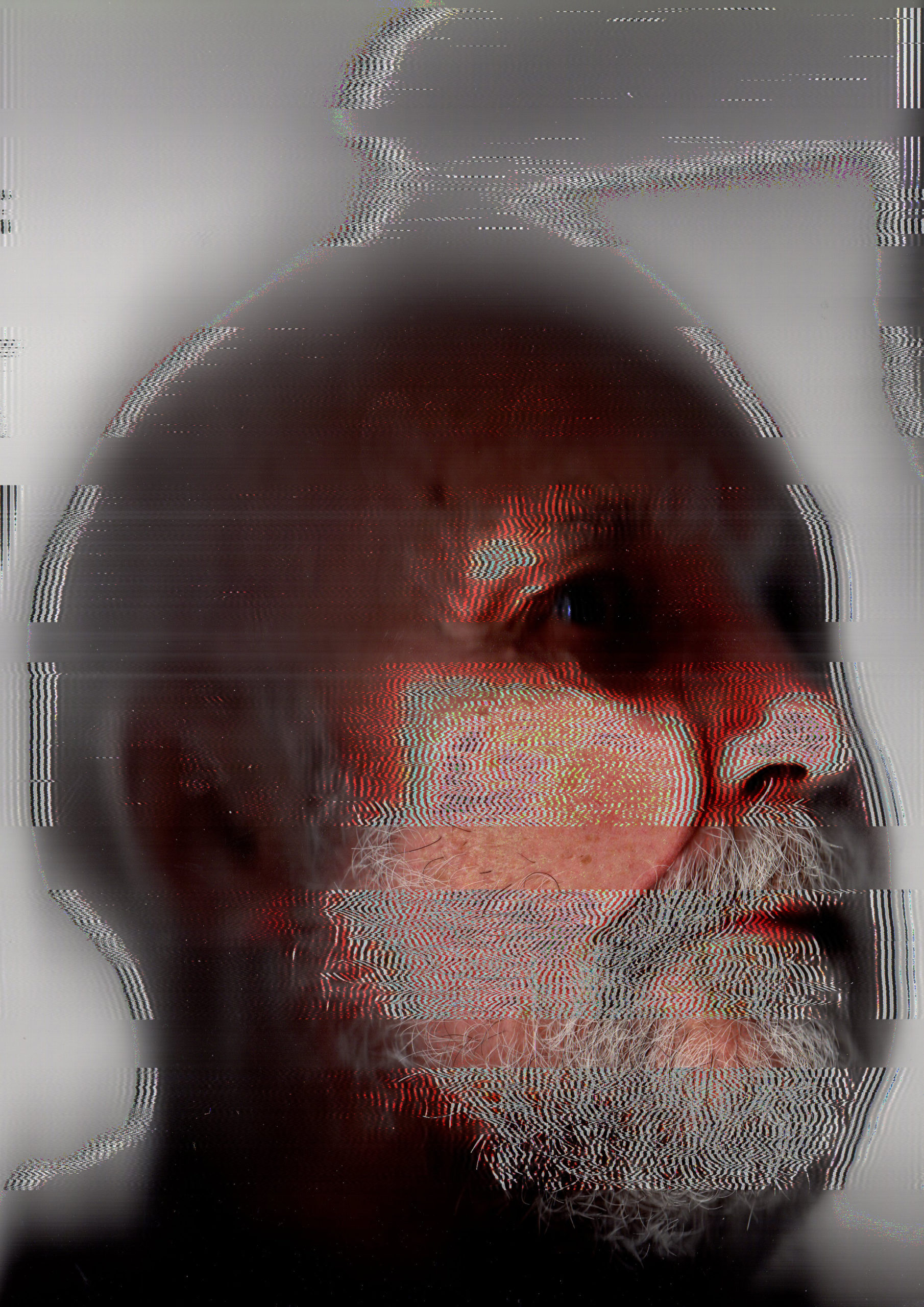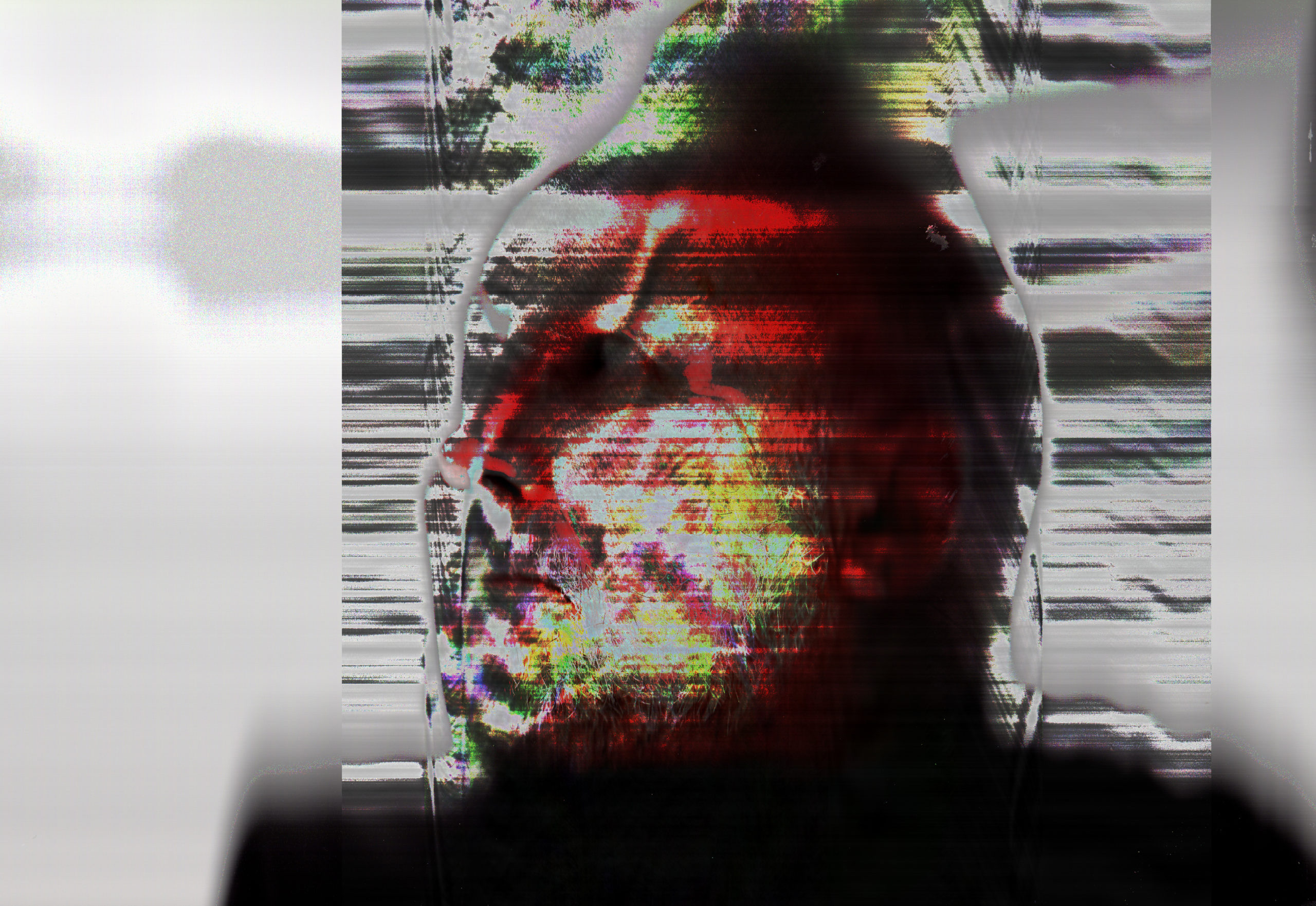 Dans un premier temps, j’ai repris quelques clichés issus de ma série sur l’autoportrait, « Unfolded Self-Portrait » pour les « glitcher » en introduisant aléatoirement des bugs dans les fichiers sources, et en déplaçant des morceaux de code. Puis, dans une deuxième série, j’ai ouvert les fichiers dans un logiciel de traitement du son (Audacity) et j’ai appliqué aux fichiers images des effets destinés aux sons : boucle, amplification, filtre passe-haut, réverbération, écho. Enfin, j’ai fait générer par une IA un visage entièrement artificiel que j’ai greffé sur un de mes autoportraits, créant ainsi une chimère hybride entre un visage humain et un visage entièrement simulé.