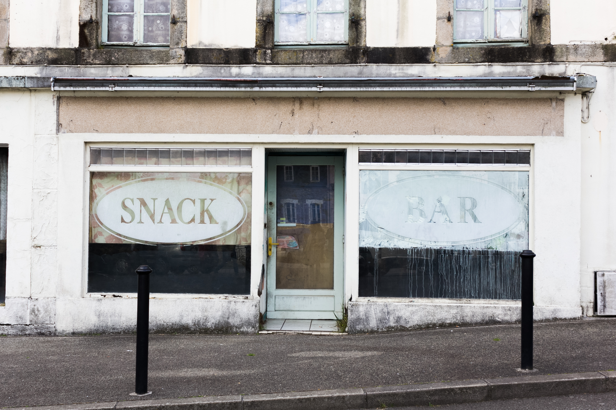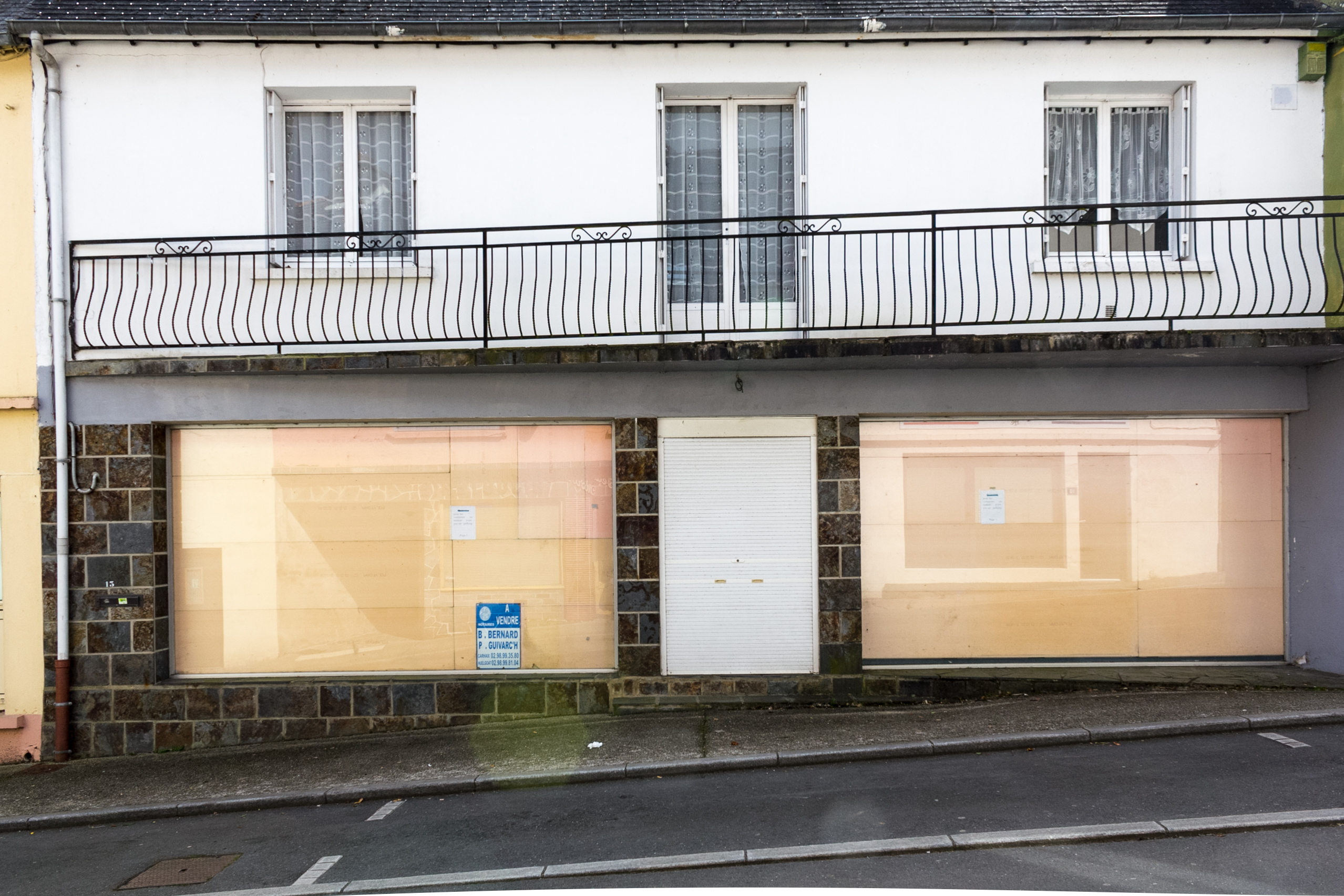 En parcourant les rues de cette petite ville du centre Bretagne, j’ai été surpris par la densité de commerces à vendre. De cette surprise, l’idée de cette série m’est venue.