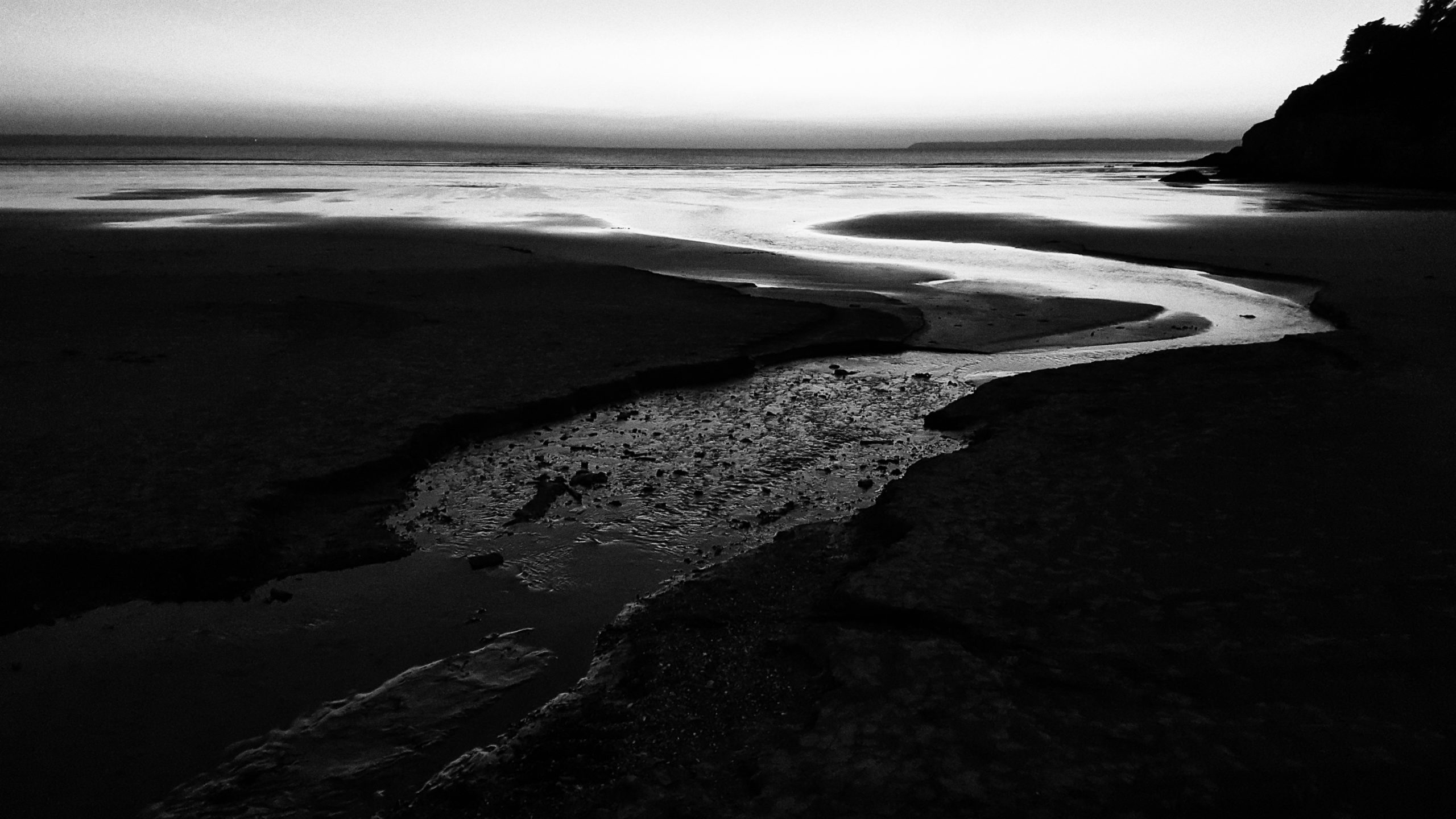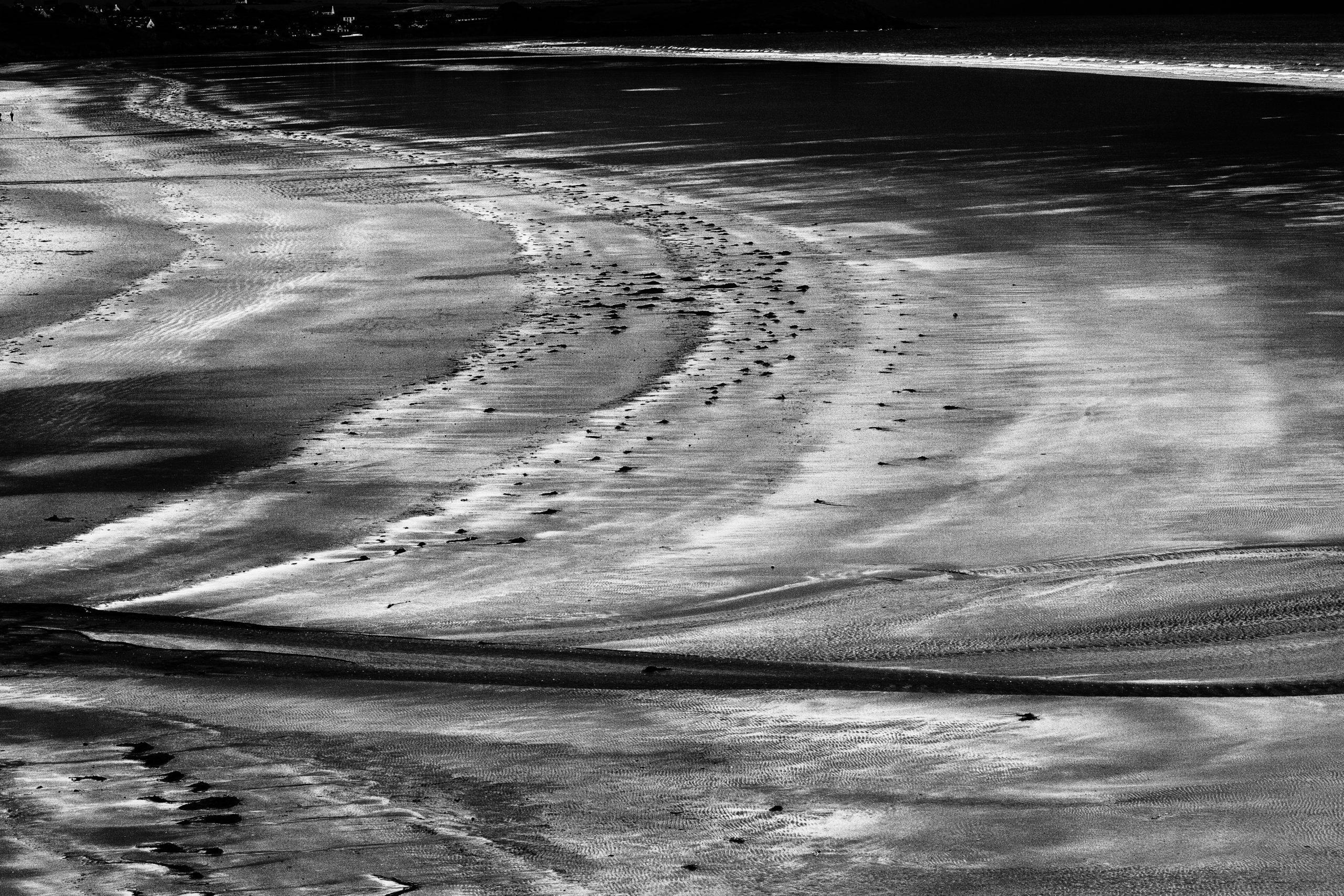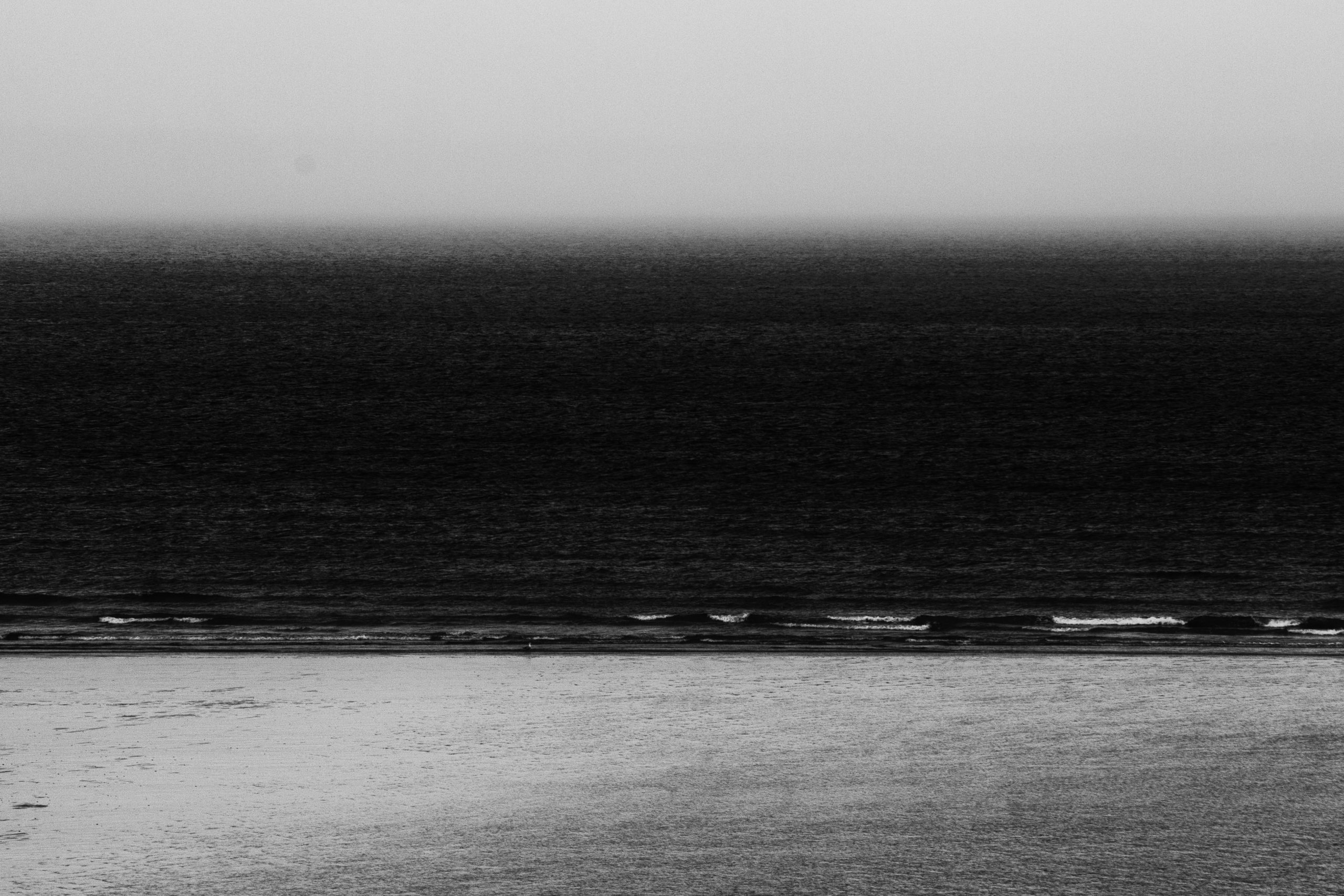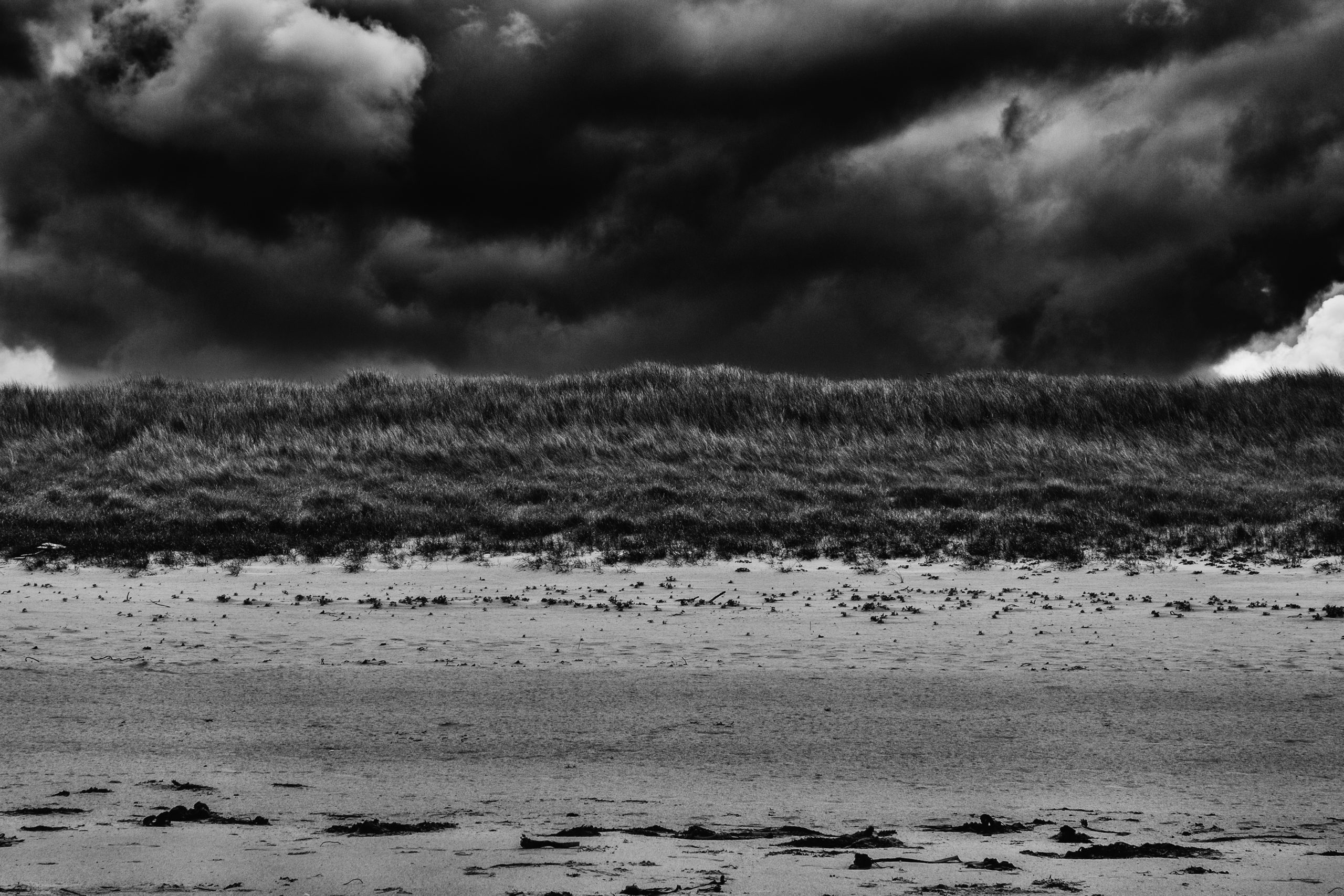 Orages sur la plage de Pentrez, baie de Douarnenez et rocher sur la plage de Kerlouan. Finistère. Baltique.